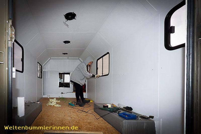 Endlich haben wir uns getraut, große Löcher in die Außenhülle hineinzusägen, um unsere Fenster einbauen zu können.