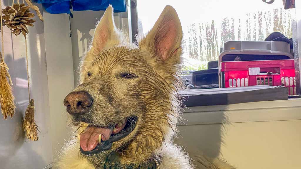 Auch Luna erfreut sich am Frühling, kann man doch wieder prima im Wasser und im Matsch herumtollen.
